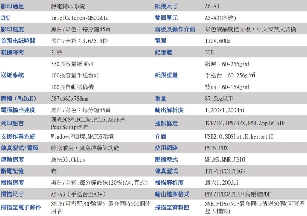 RICOH IM C4500 彩色雷射多功能事務機 彩色列印 / 影印每分鐘45頁 影印 / 列印 / 掃描 / 選配傳真 螢幕觸控板 / 介面客製化 支持行動裝置 智慧人體偵測 / 資料安全不洩漏 優惠中!歡迎來電洽詢!新機/福利機 數量有限! 立即諮詢 詳細規格 檔案下載 檔案名稱連結IM C4500 驅動程式點擊下載
