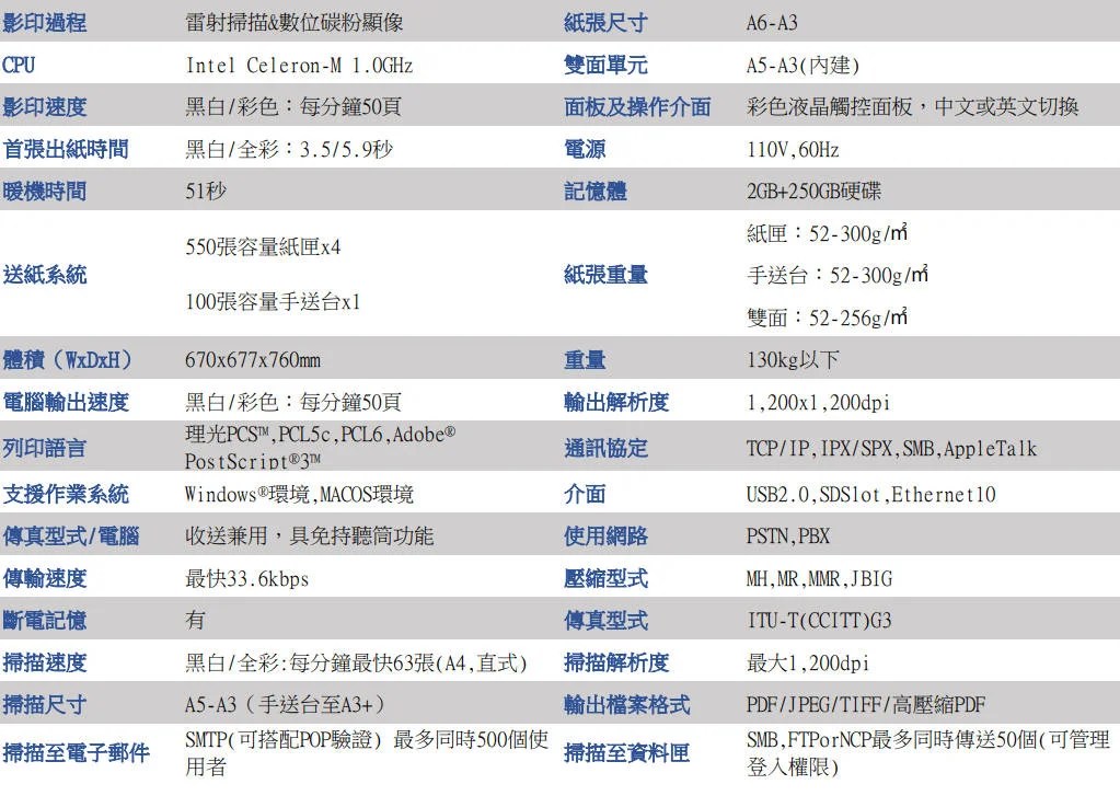 RICOH MP C5000 事務機 彩色列印 / 影印每分鐘50頁 影印 / 列印 / 掃描 / 選配傳真 螢幕觸控板 / 介面客製化 支持行動裝置 智慧人體偵測 / 資料安全不洩漏 優惠中!歡迎來電洽詢!新機/福利機 數量有限! 立即諮詢 詳細規格 檔案下載 檔案名稱連結MP C5000 驅動程式點擊下載