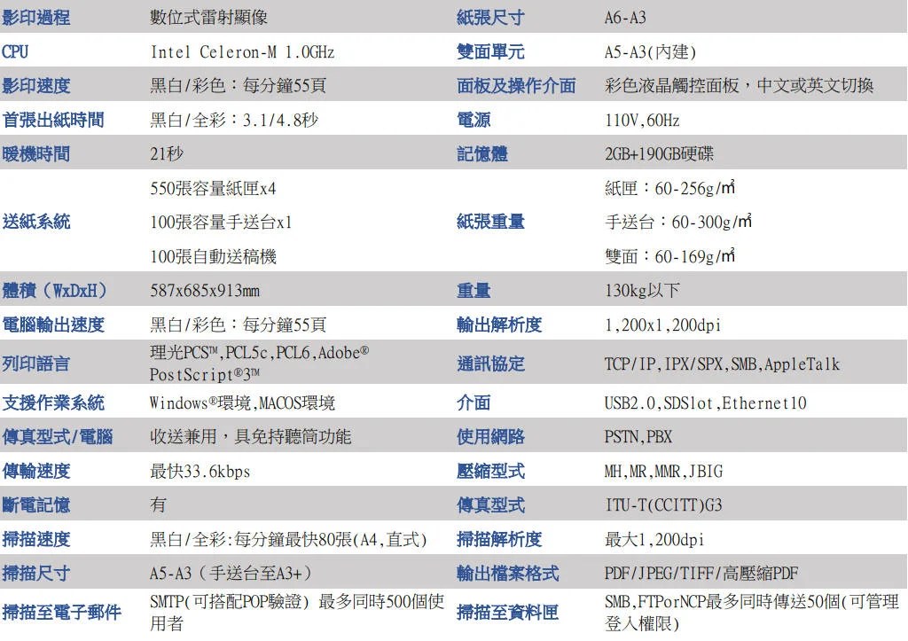 RICOH MP C5504 多功能全觸控事務機 彩色列印 / 影印每分鐘55頁 影印 / 列印 / 掃描 / 選配傳真 螢幕觸控板 / 介面客製化 支持行動裝置 智慧人體偵測 / 資料安全不洩漏 優惠中!歡迎來電洽詢!新機/福利機 數量有限! 立即諮詢 詳細規格 檔案下載 檔案名稱連結MP C5504 驅動程式點擊下載